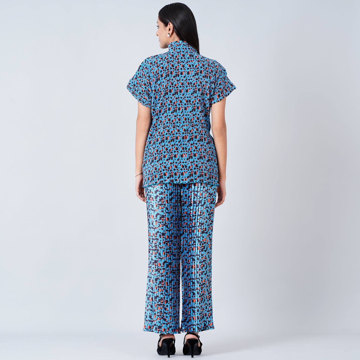 Blue Animal Print Top and Knife Pleated Palazzo Set