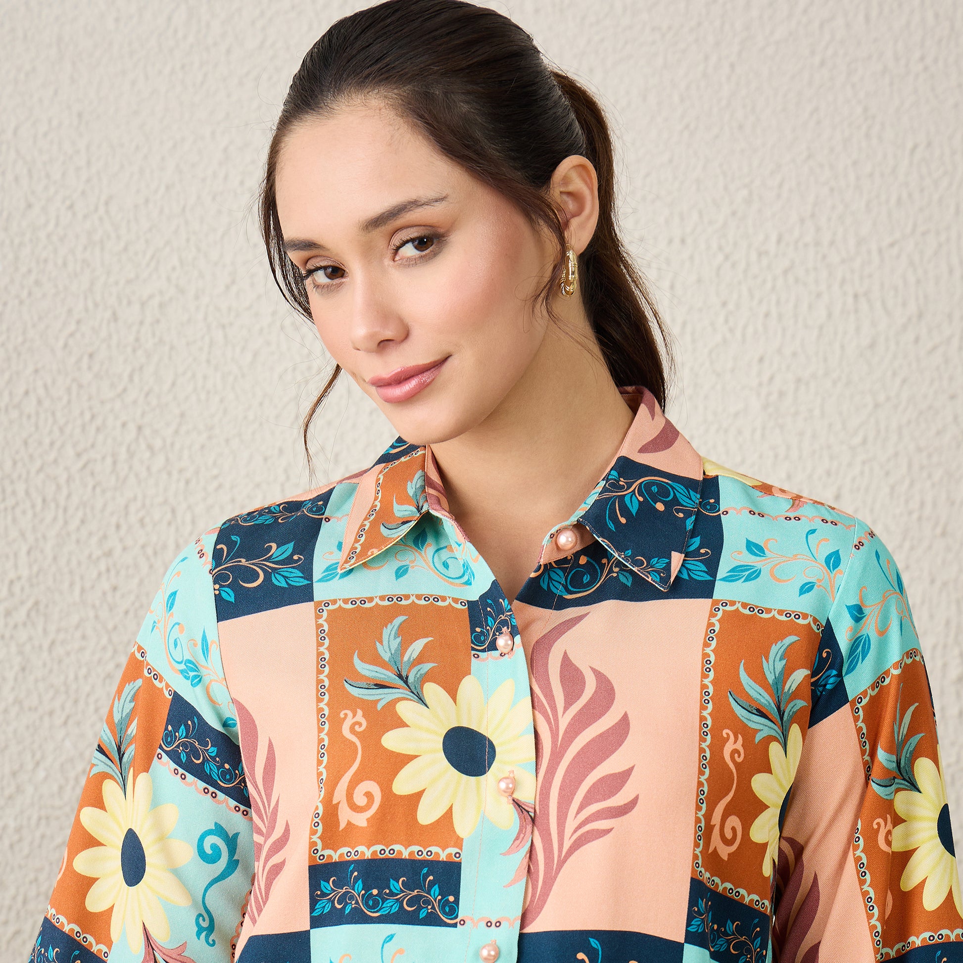 Brown and Blue Floral Print Shirt