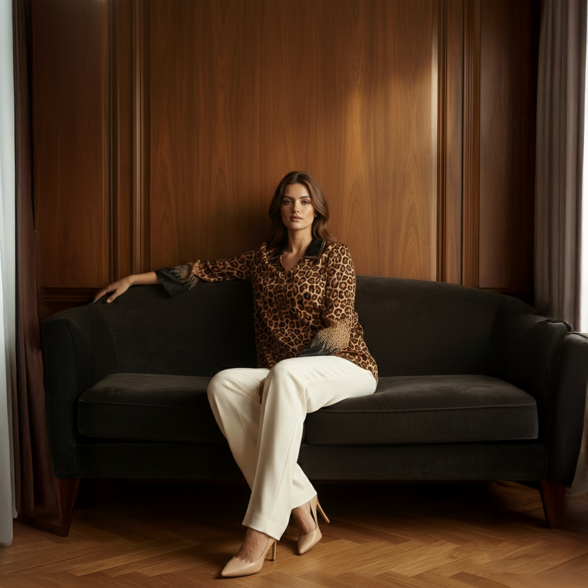 Description A refined printed tunic designed with a relaxed yet structured silhouette that flatters effortlessly. The piece features a statement sequin embroidered neckline that draws attention with intricate detailing, while the fluid fabric allows graceful movement. Finished with full-length sleeves and a clean hemline, it balances sophistication with everyday ease.