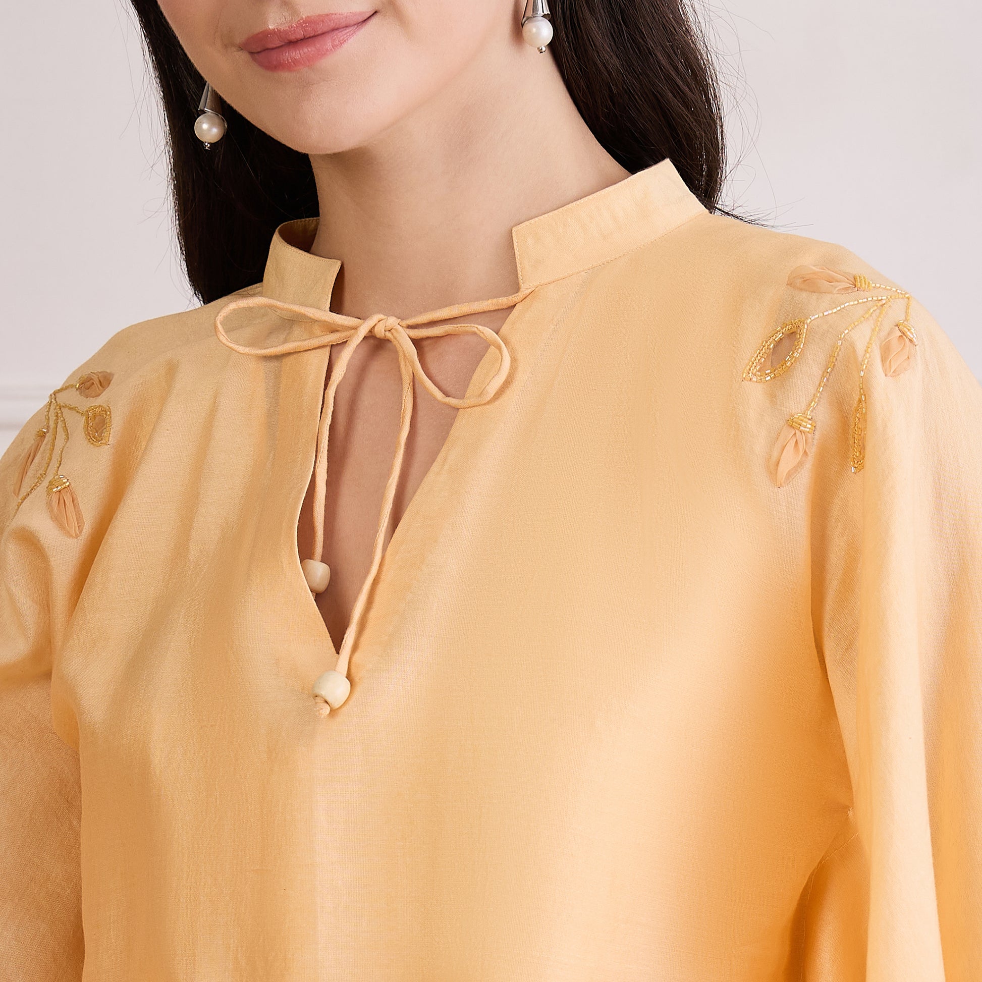 Butter Yellow Applique Kaftan Top