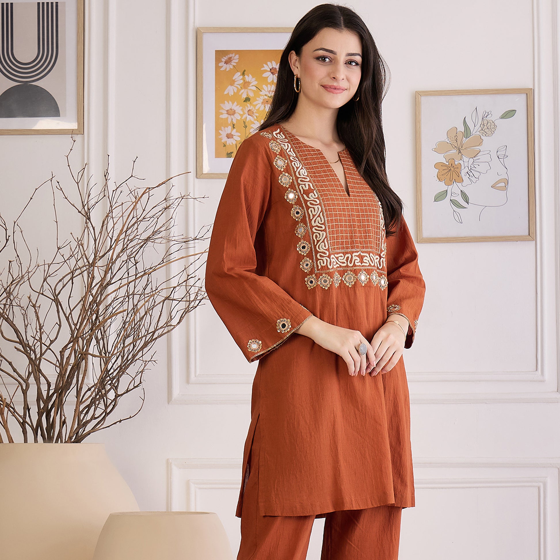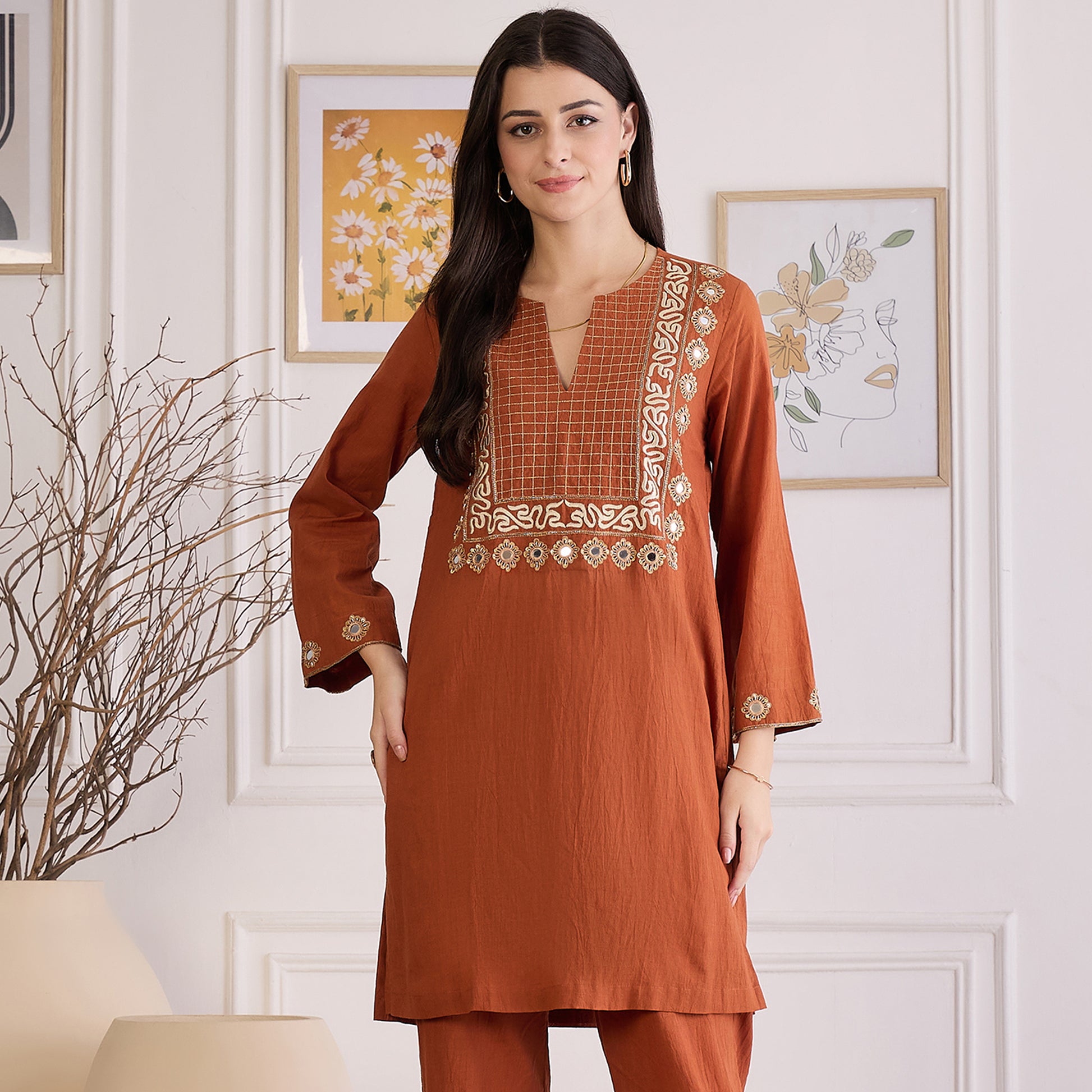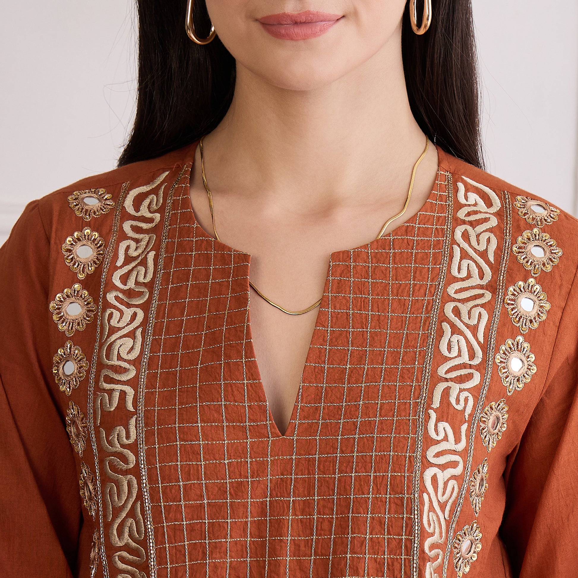 Earthy Brown Yoke Embroidered Kurta