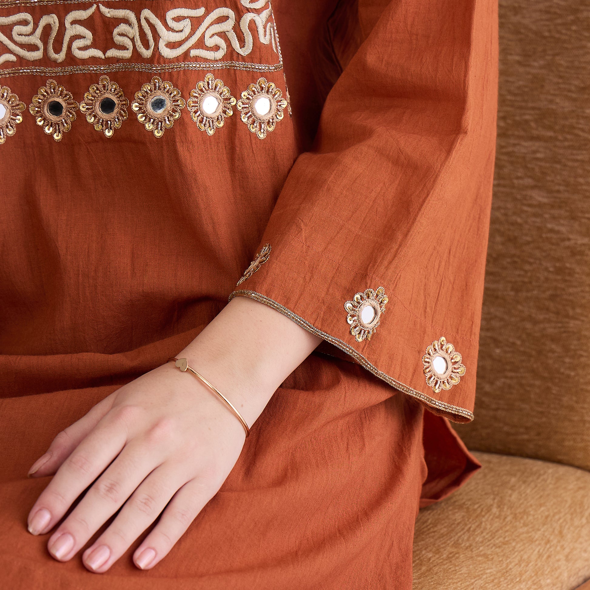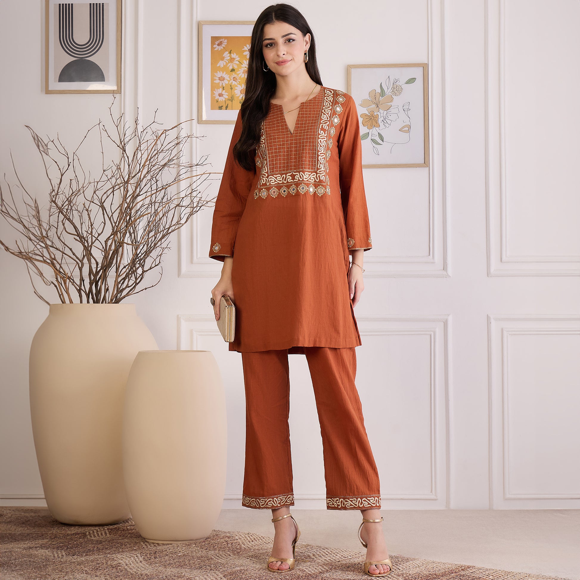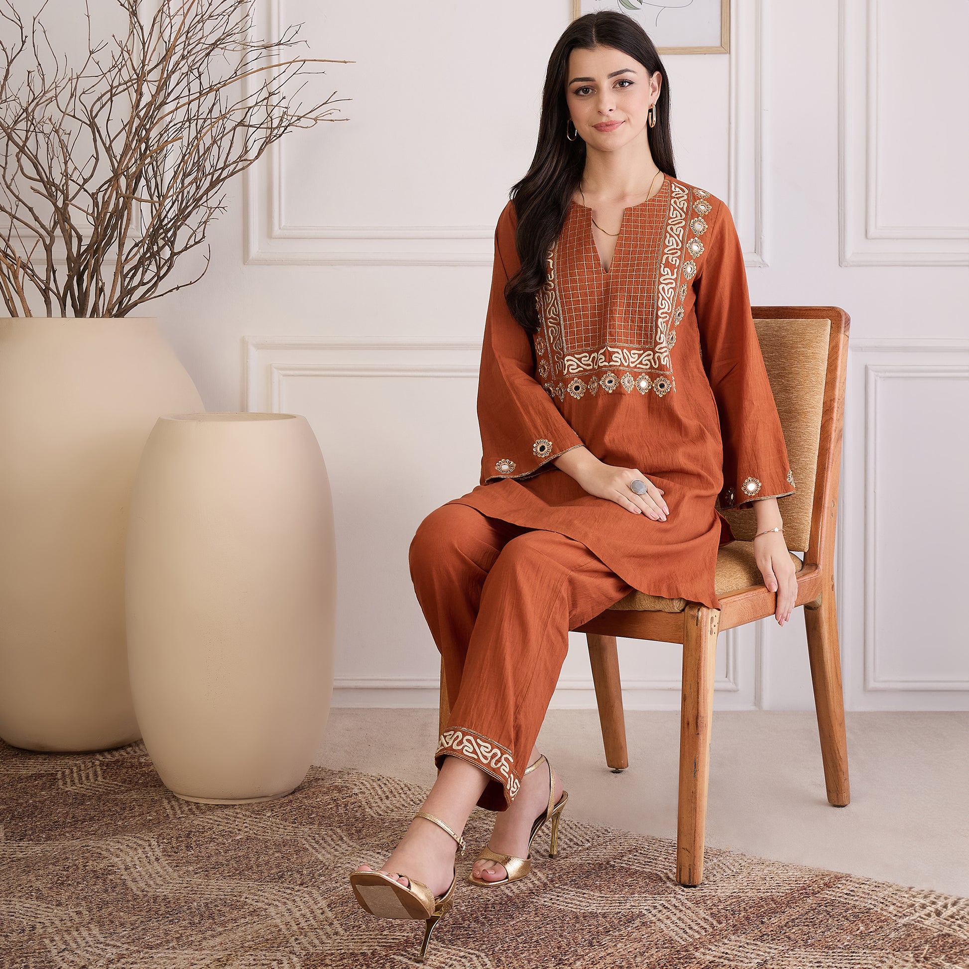 Earthy Brown Yoke Embroidered Kurta