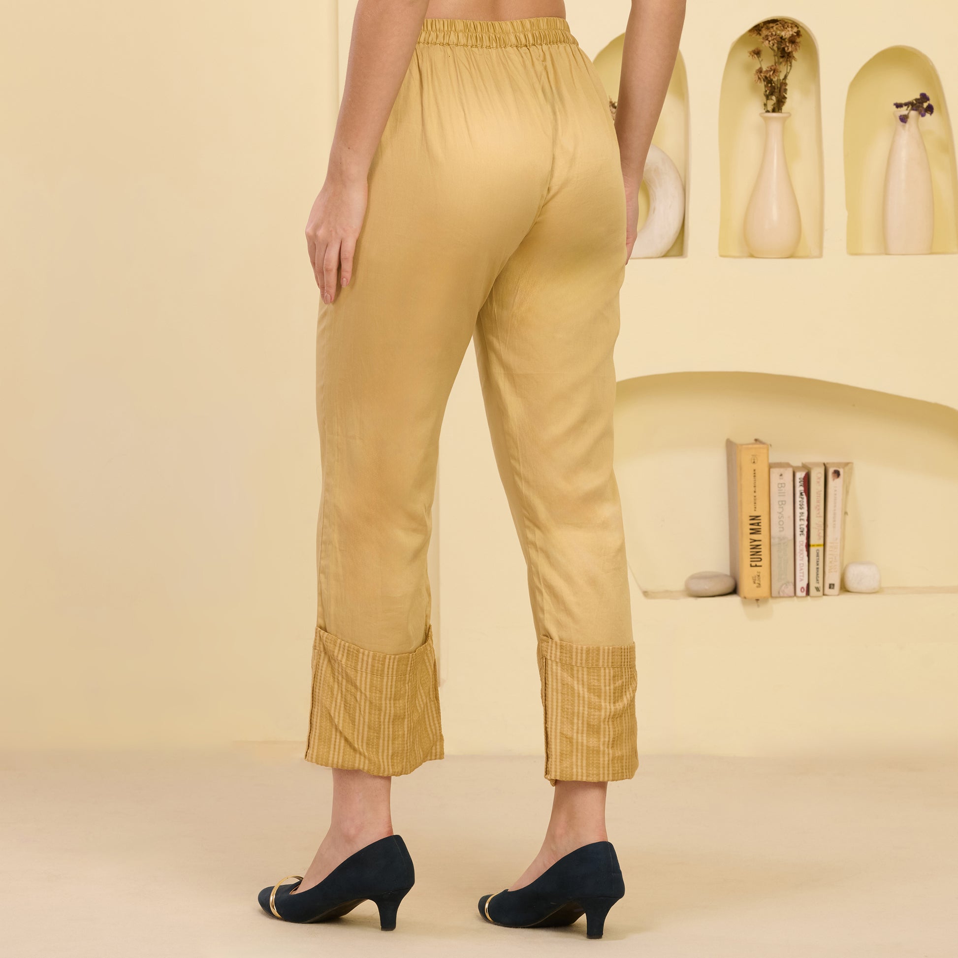 Style Guide Pair these folded hem straight trousers with a tucked-in shirt or a fitted top to emphasize the sleek silhouette and chic folded hemline. Add a cropped blazer or cardigan for a polished, layered look suitable for work or semi-formal settings. Opt for loafers or pointed-toe flats to maintain a sophisticated vibe, or choose sneakers for a casual twist. Keep accessories minimal with a slim belt or a structured watch to complement the clean lines. Finish with a neutral tote or a bold crossbody bag to create a versatile outfit that’s effortlessly stylish.
