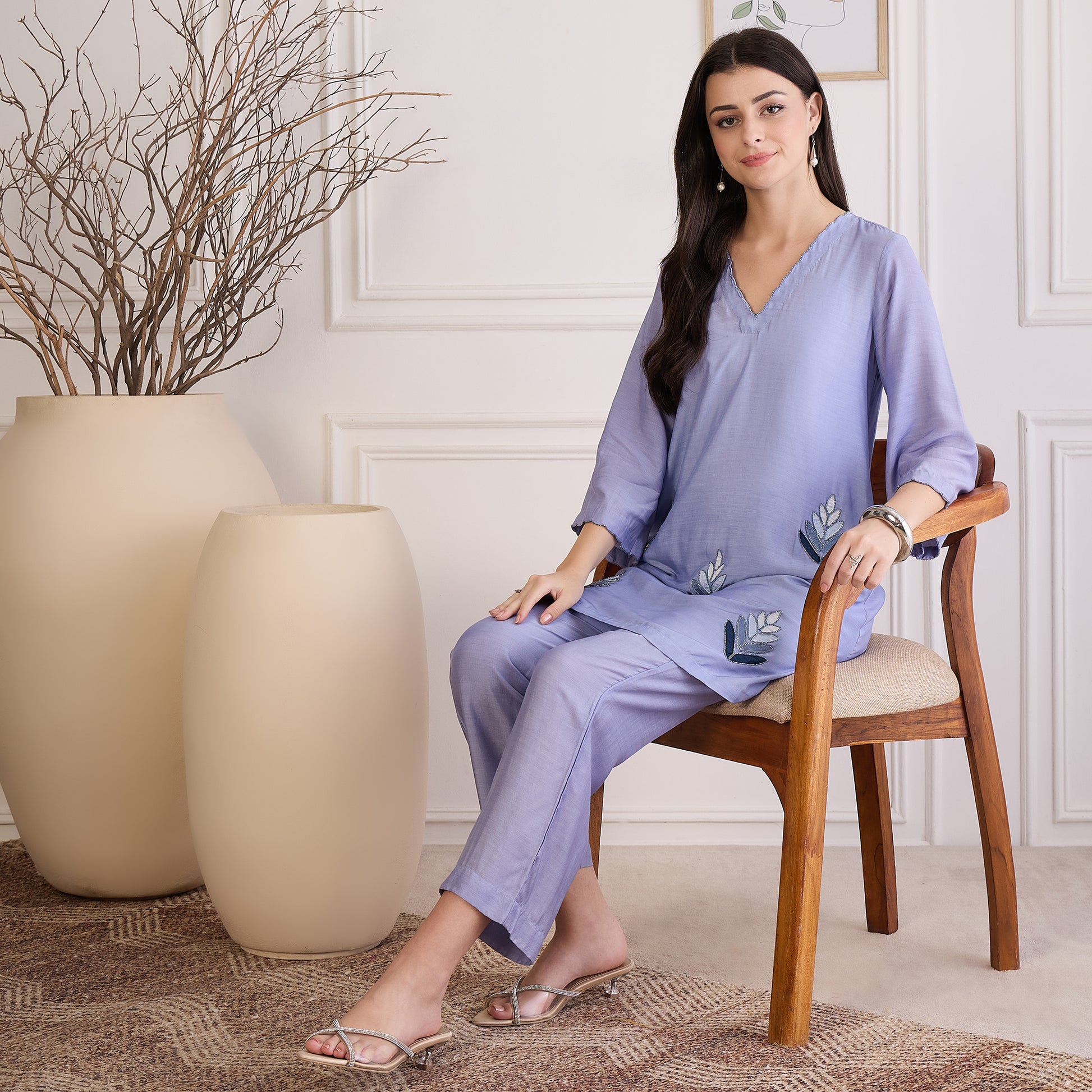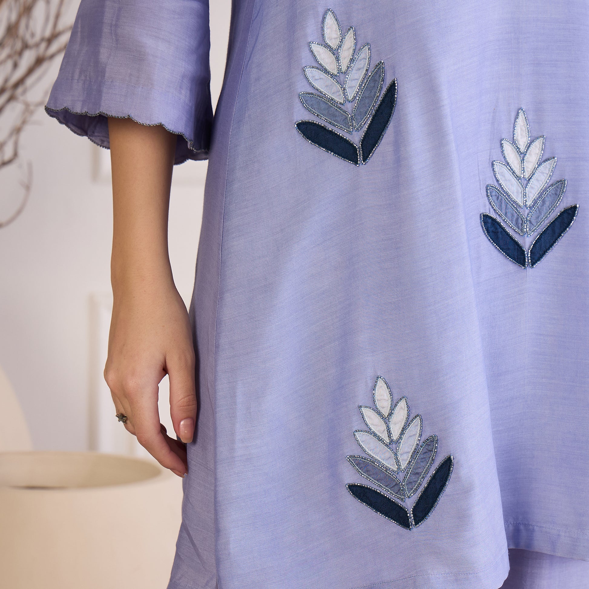 Description Bring an artisanal flair to your wardrobe with this applique kurta adorned with delicate bead detailing. Crafted in a fluid, lightweight fabric, it offers an airy feel and graceful movement. The mix of textured applique and subtle shimmer creates a visually rich design that's equal parts contemporary and timeless—perfect for elevating your everyday style.