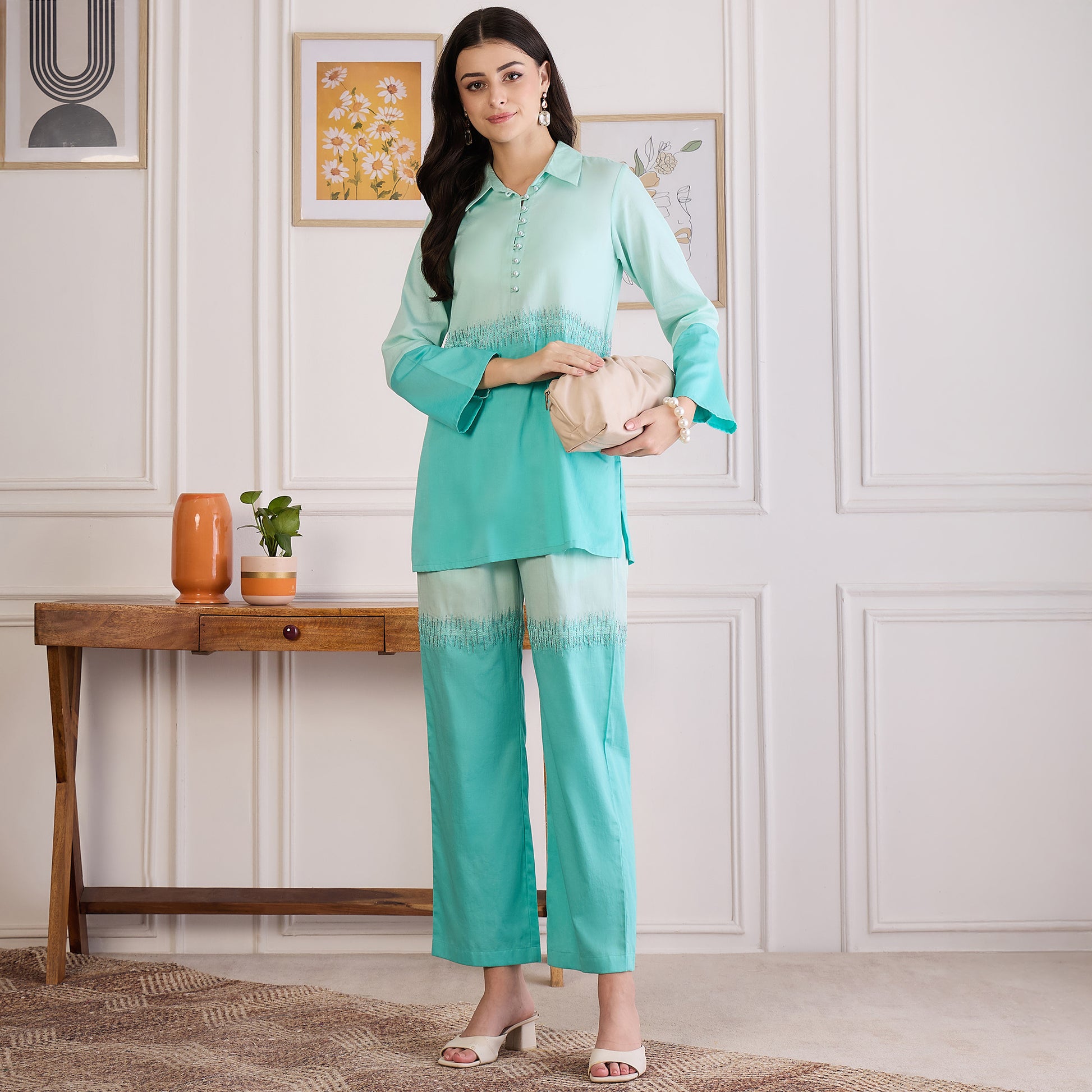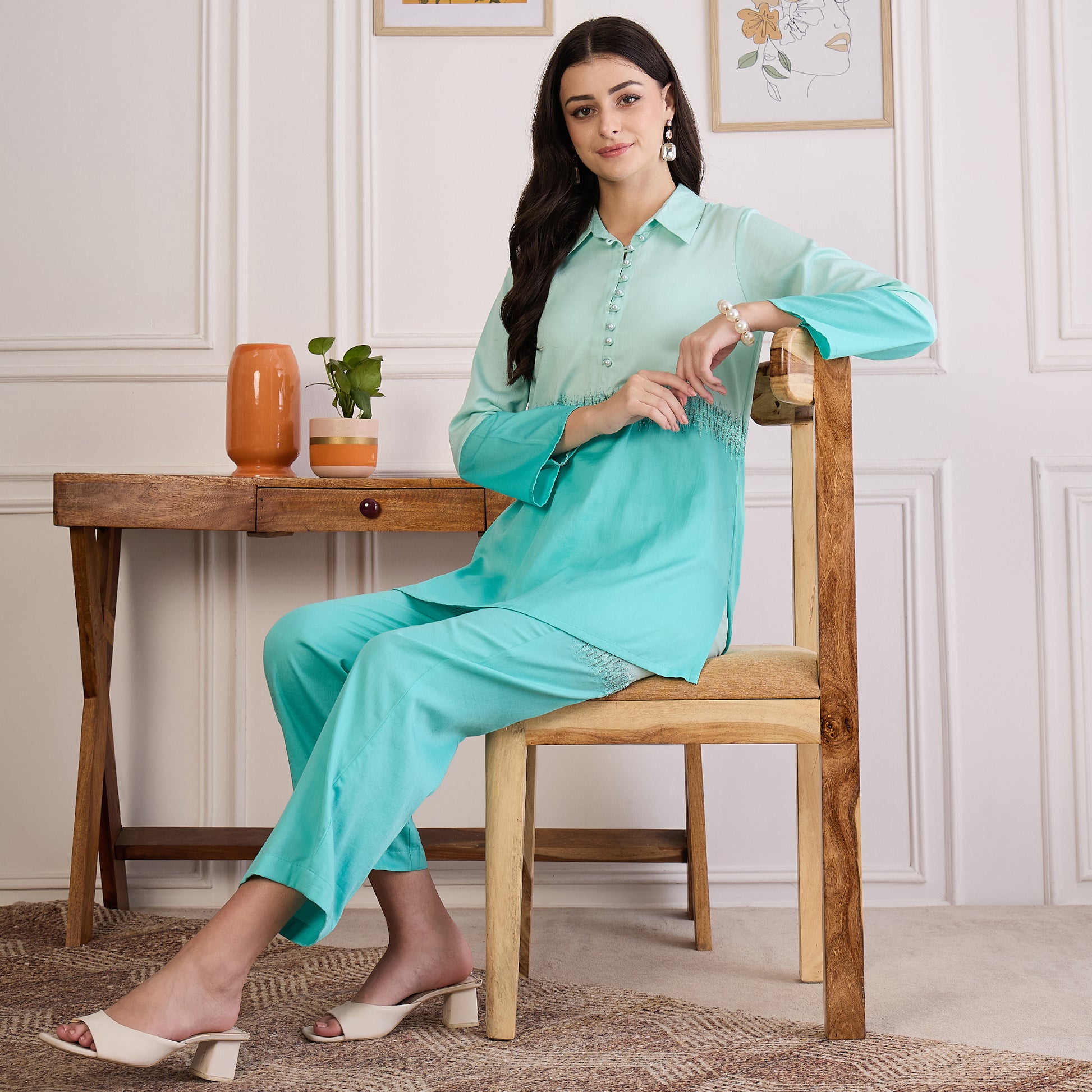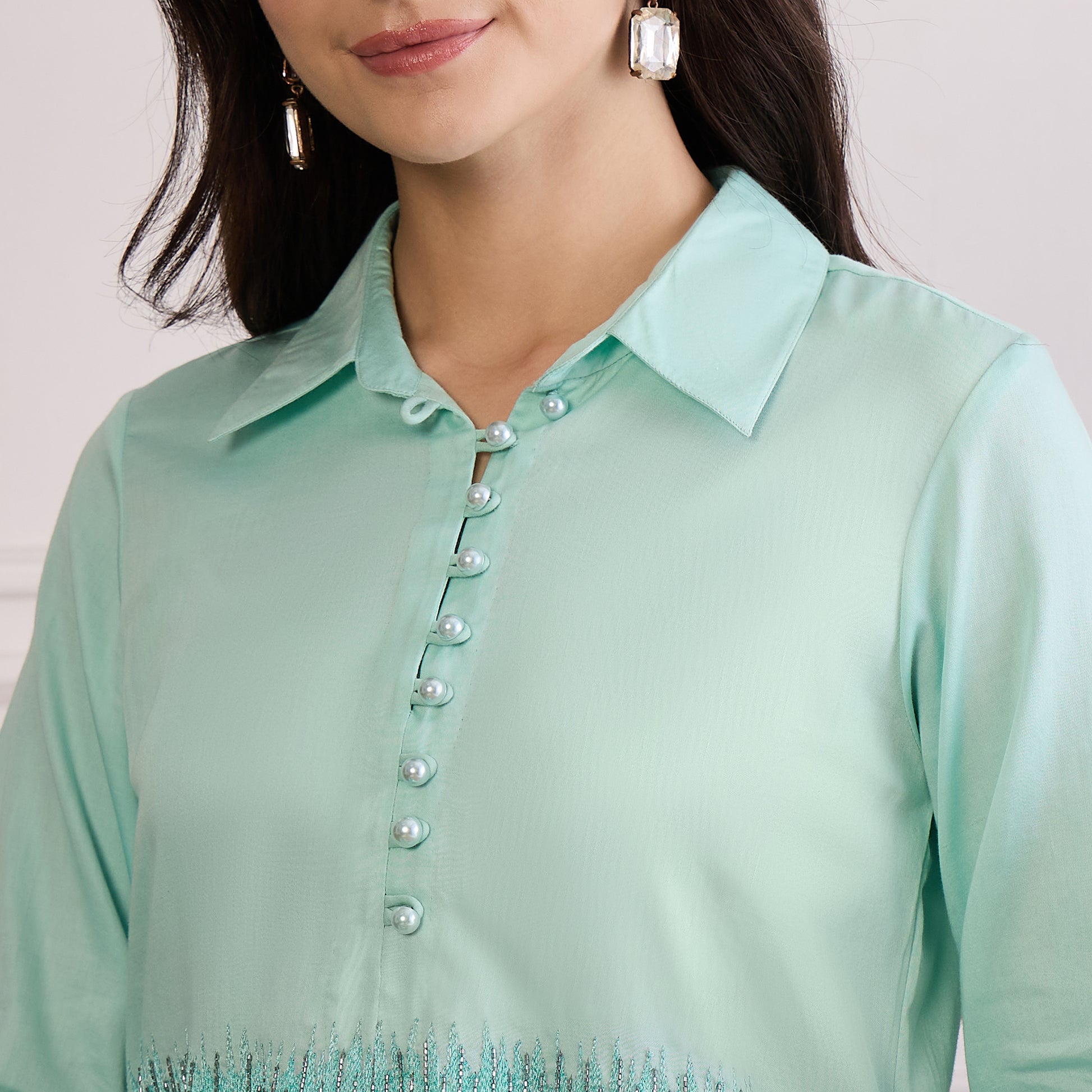 Jelly Mint Dual-Tone Hand Embroidered Top