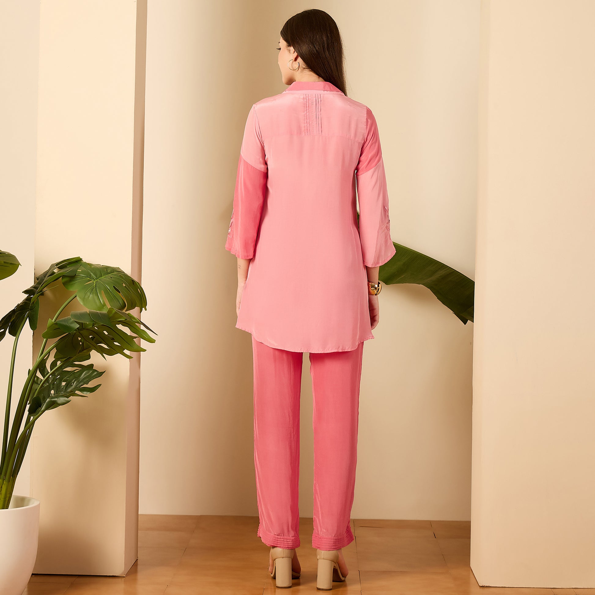 Luxury Pink Patched Hand Embroidered Co-Ord Set