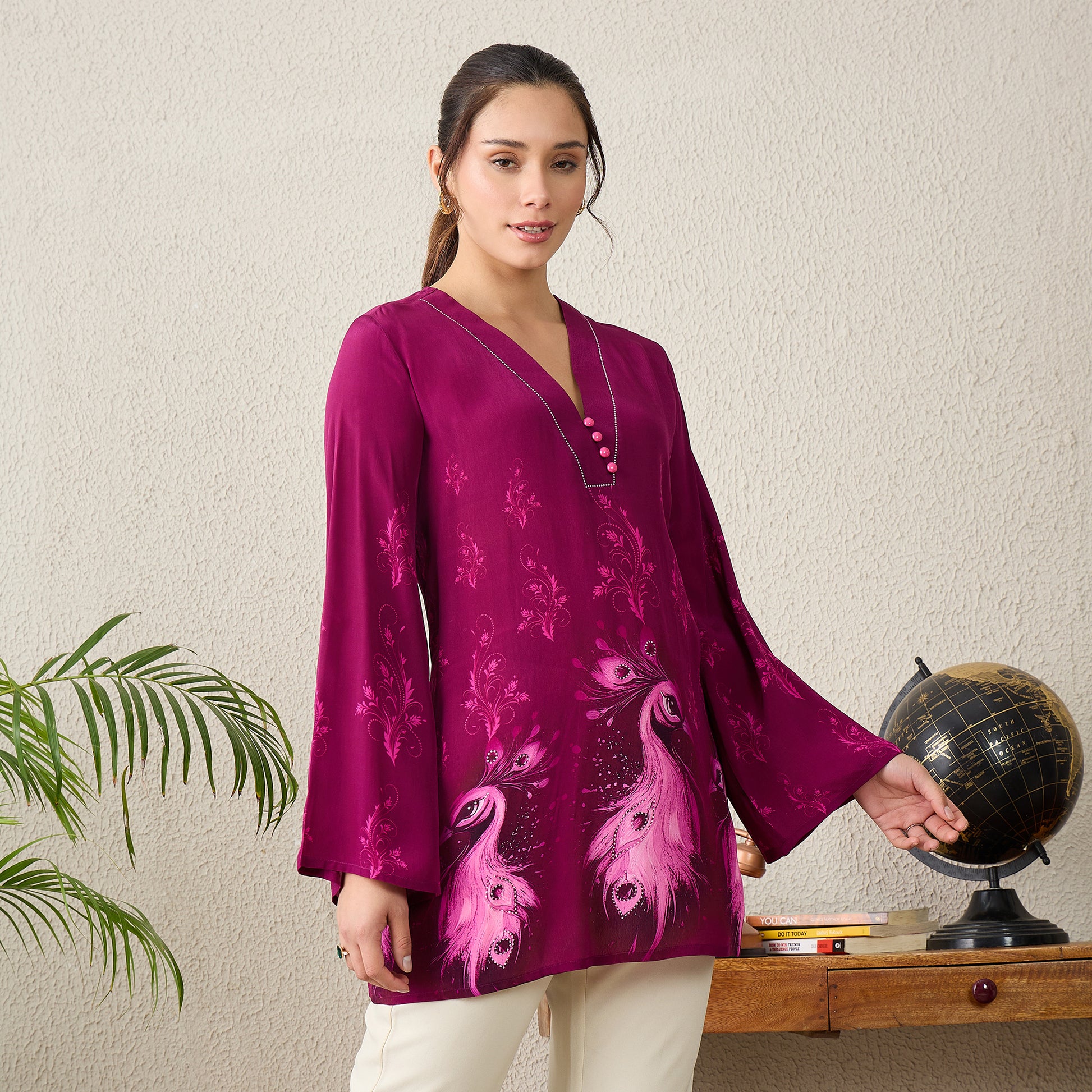 Magenta Monochrome Peacock Printed Top