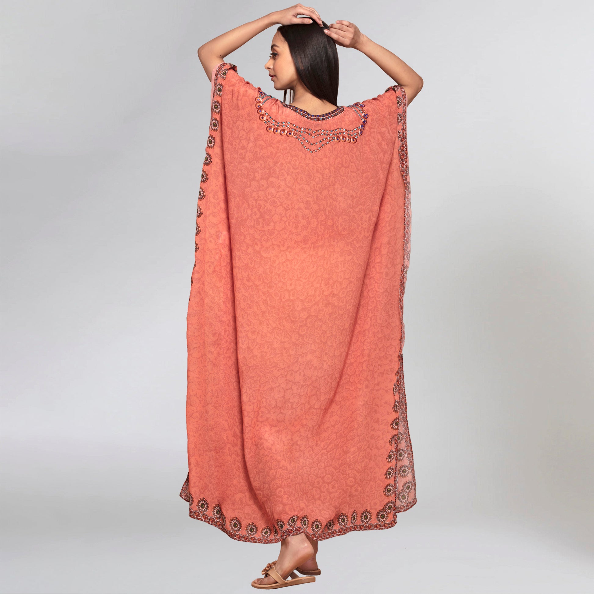 Orange Pearl Full Length Kaftan