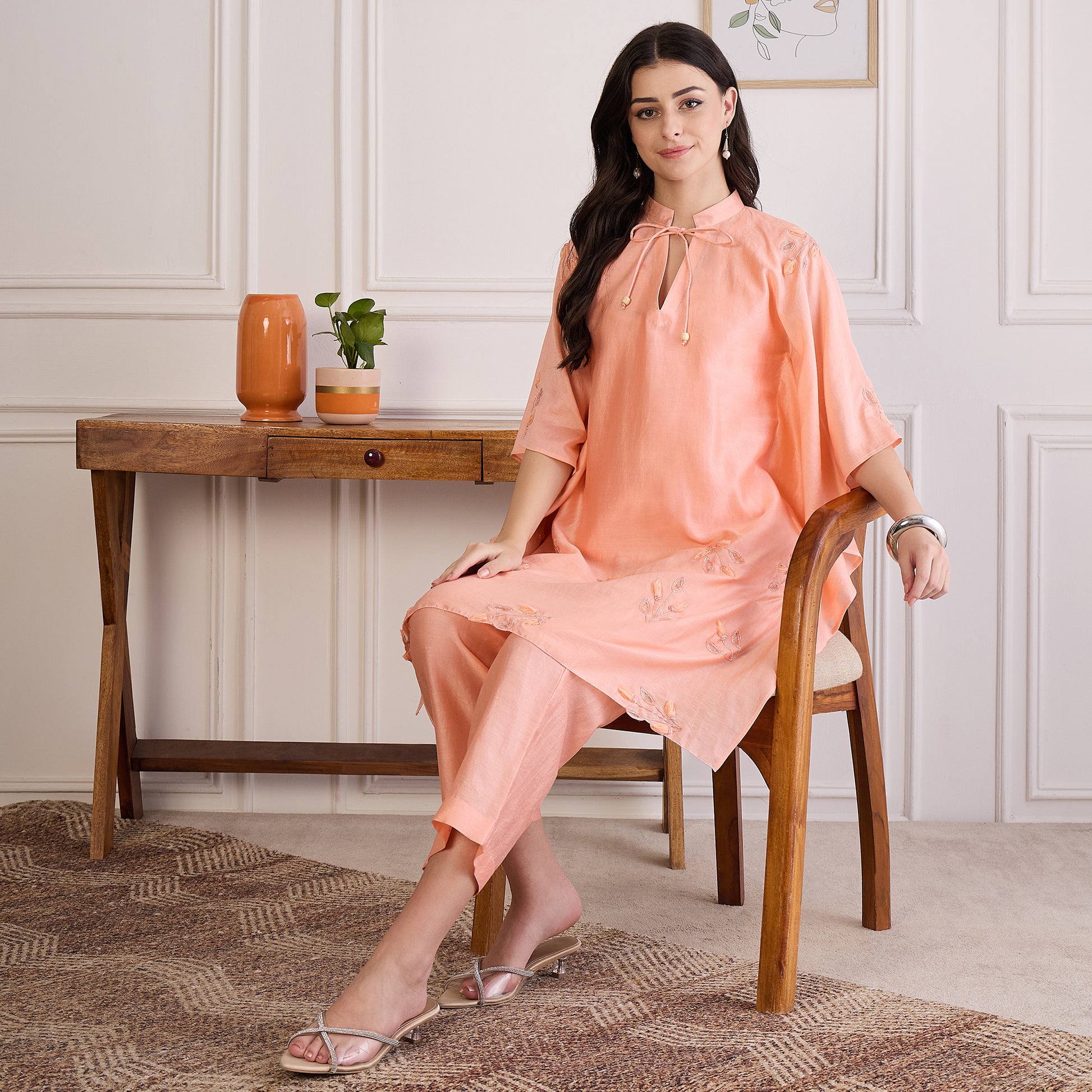 Peach Applique Kaftan Top