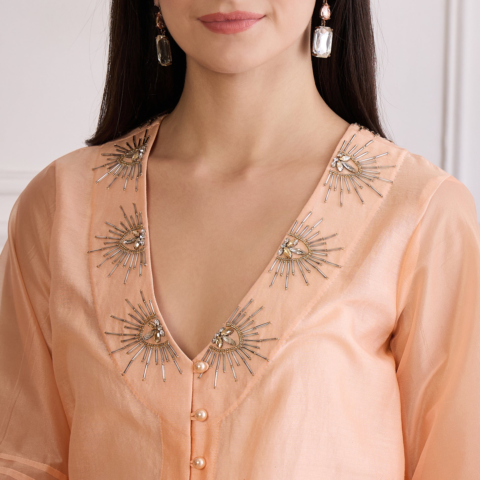 Peach Blush Pin Tuck Hand Embroidered Top