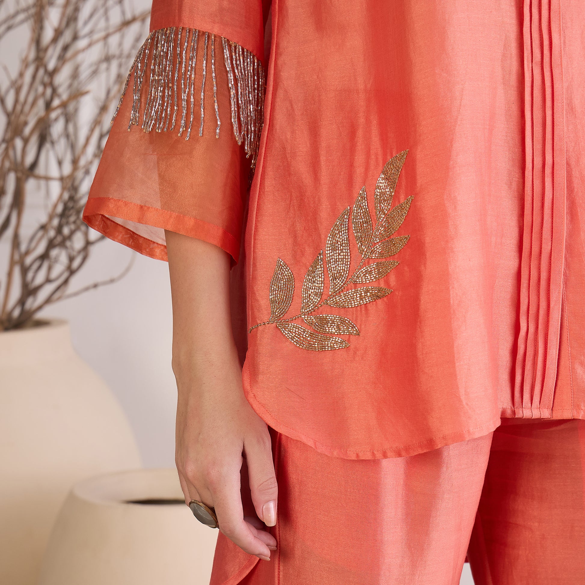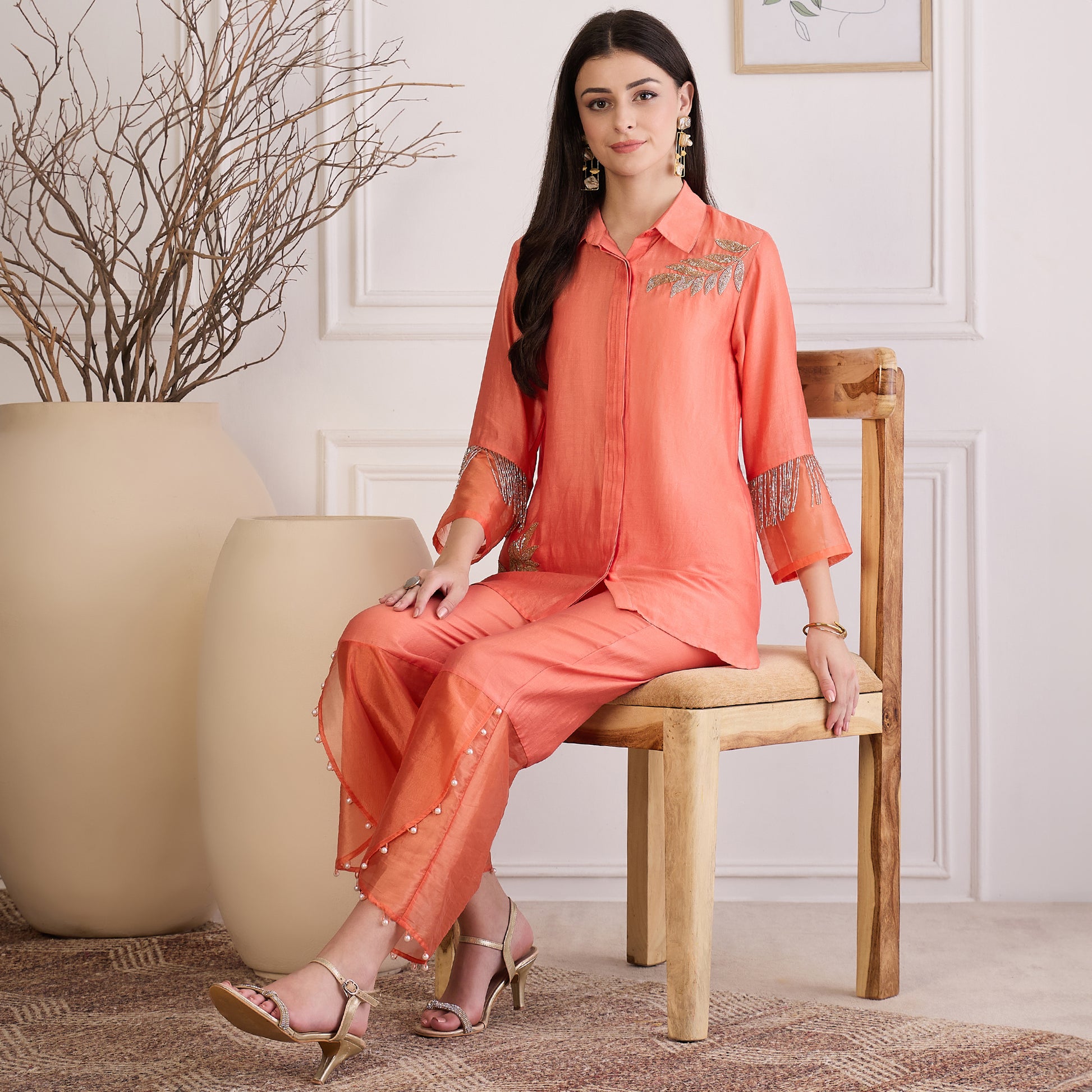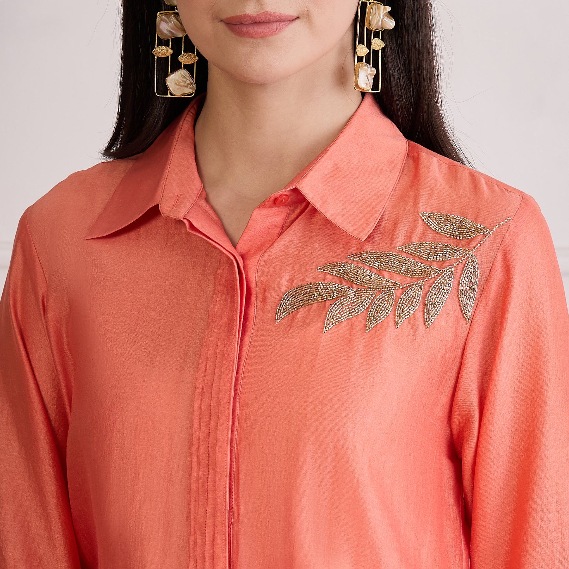 Description Experience artisanal elegance with this hand-embroidered top featuring precise tuck detailing on the placket and intricate cut dana embroidery. The delicate nalki accents on the sleeves add a subtle shimmer, enhancing the handcrafted charm of this beautifully detailed piece. A perfect blend of texture and embellishment for refined, timeless style.