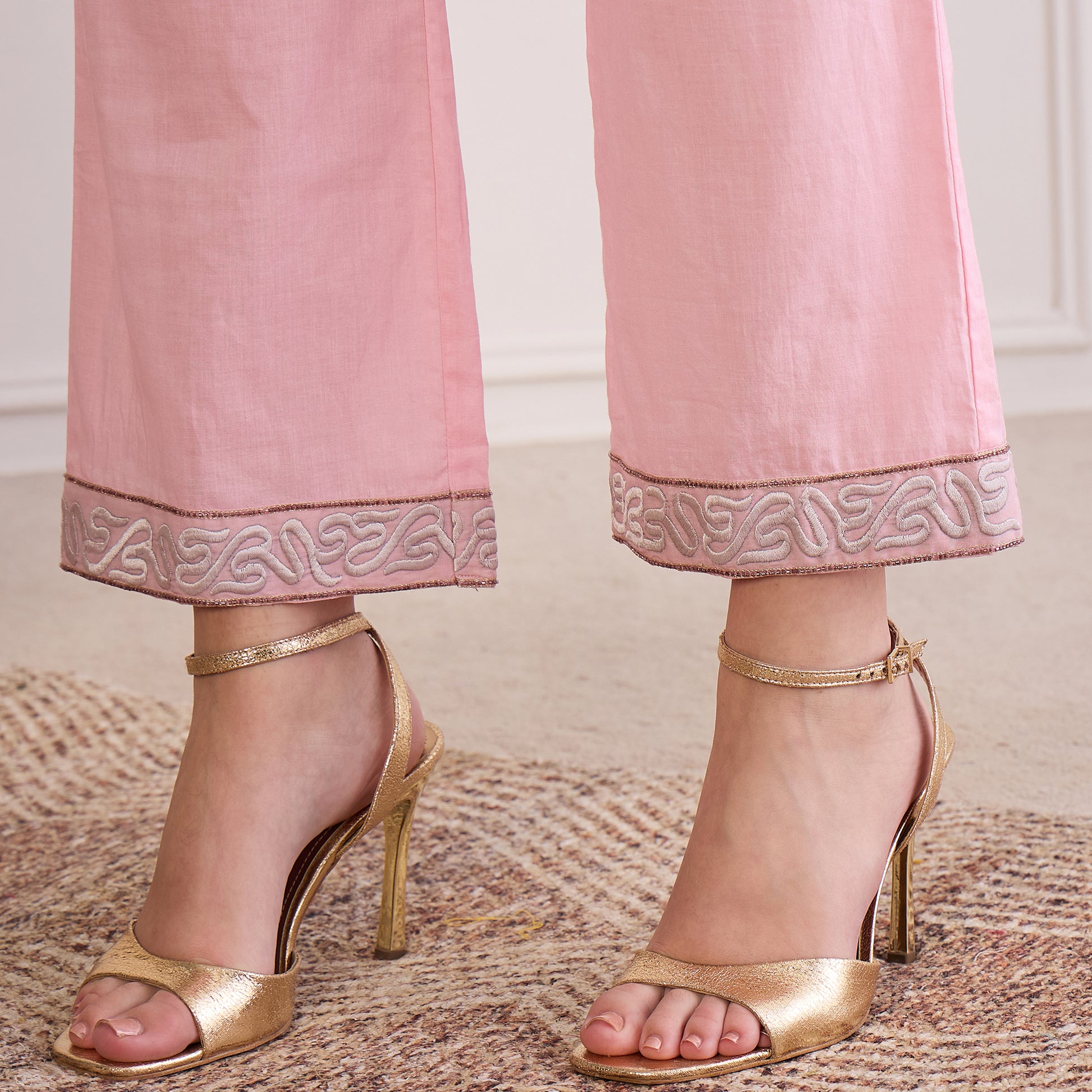 Description Shop these elegant straight pants, finished with intricate zari hand embroidery at the hem for a touch of festive charm. The clean silhouette keeps the look timeless, while the shimmering accents make them perfect for special occasions and elevated everyday wear. A versatile piece that pairs effortlessly with both traditional and contemporary styles.