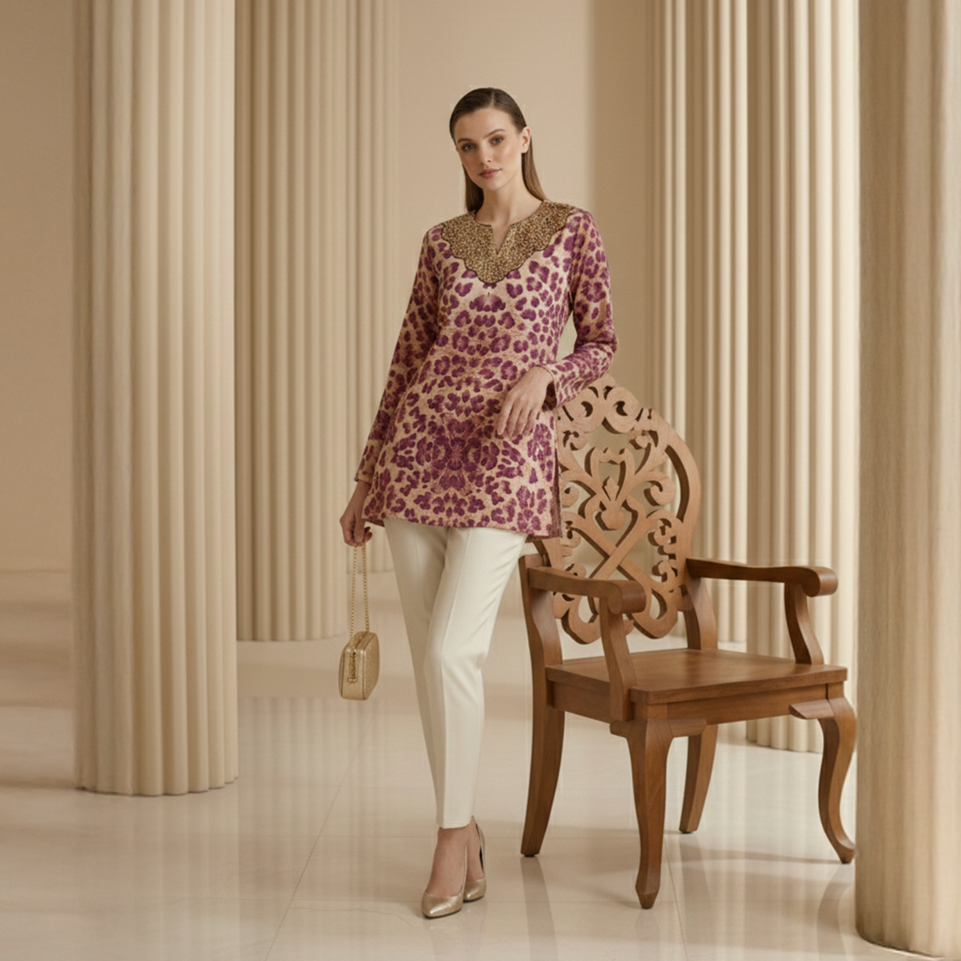 Style Guide Style it with tailored trousers or sleek straight pants for a sophisticated, put-together look. Let the tunic remain the focal point by pairing it with minimal jewelry and clean footwear. Ideal for transitioning from day engagements to evening gatherings with understated elegance.