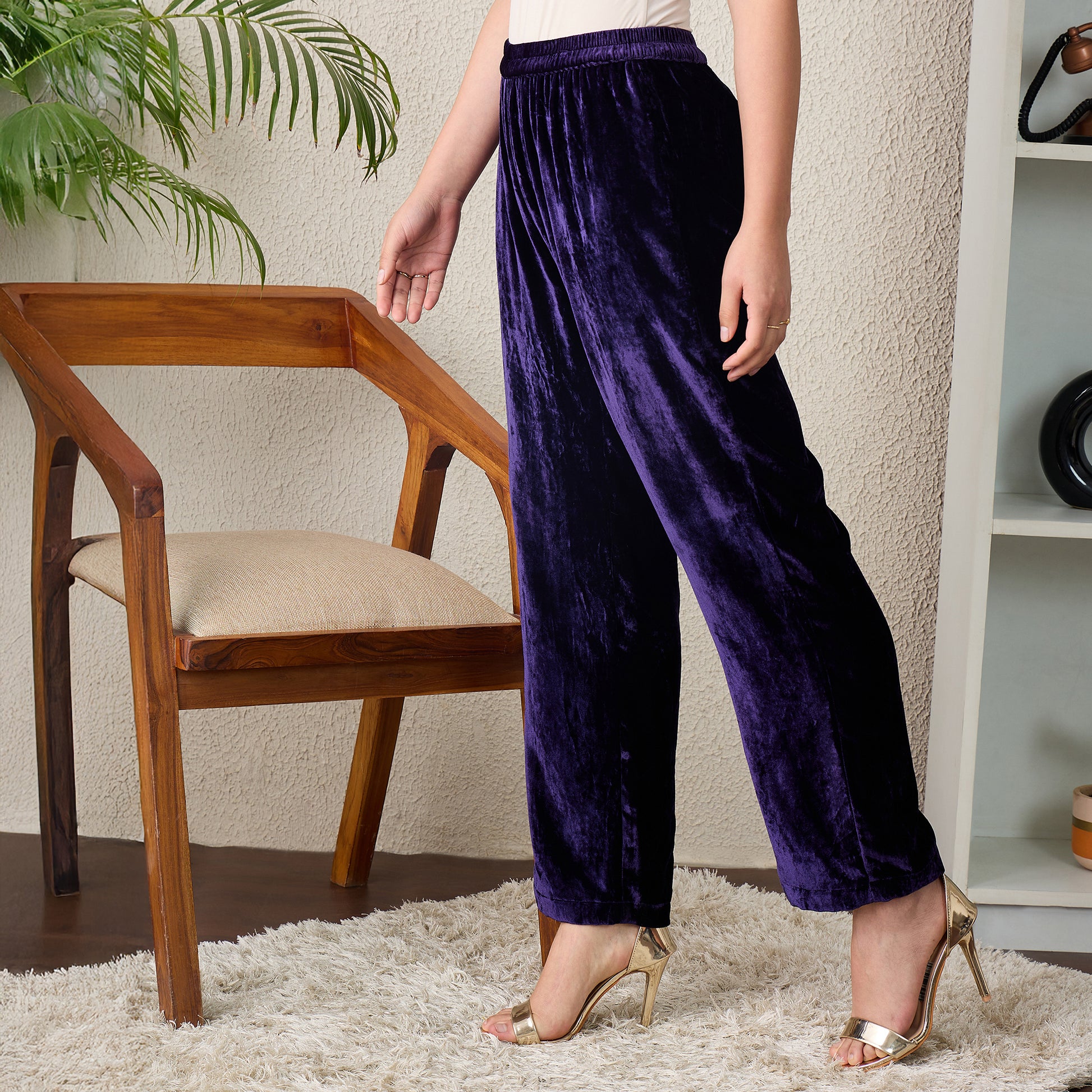 Description Indulge in luxurious comfort with our silk velvet straight pants, designed for both sophistication and ease. The plush silk velvet fabric exudes opulence, while the elasticated waistband ensures a perfect and comfortable fit. Versatile and effortlessly chic, these straight pants are ideal for elevating your everyday style or adding a touch of refinement to special occasions.