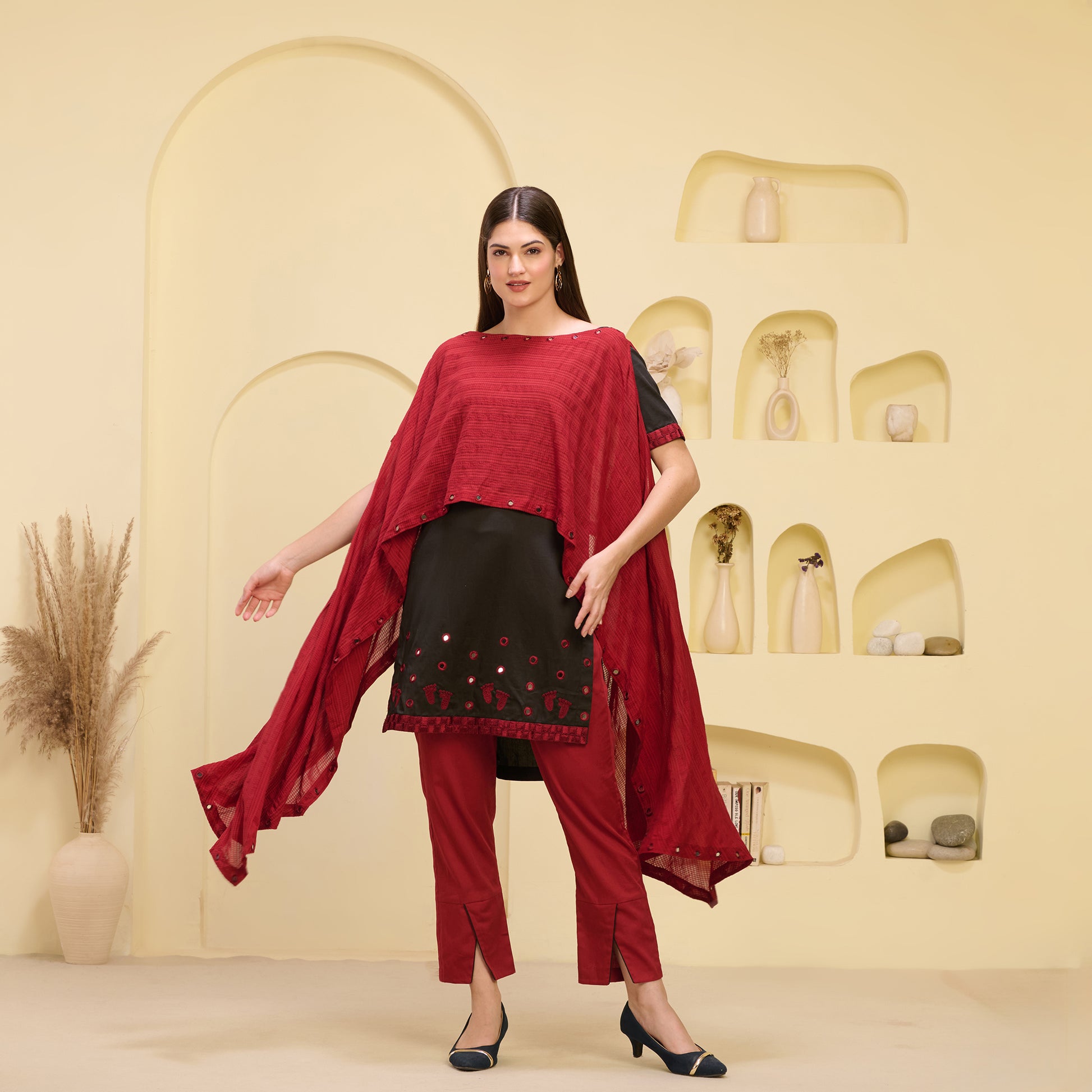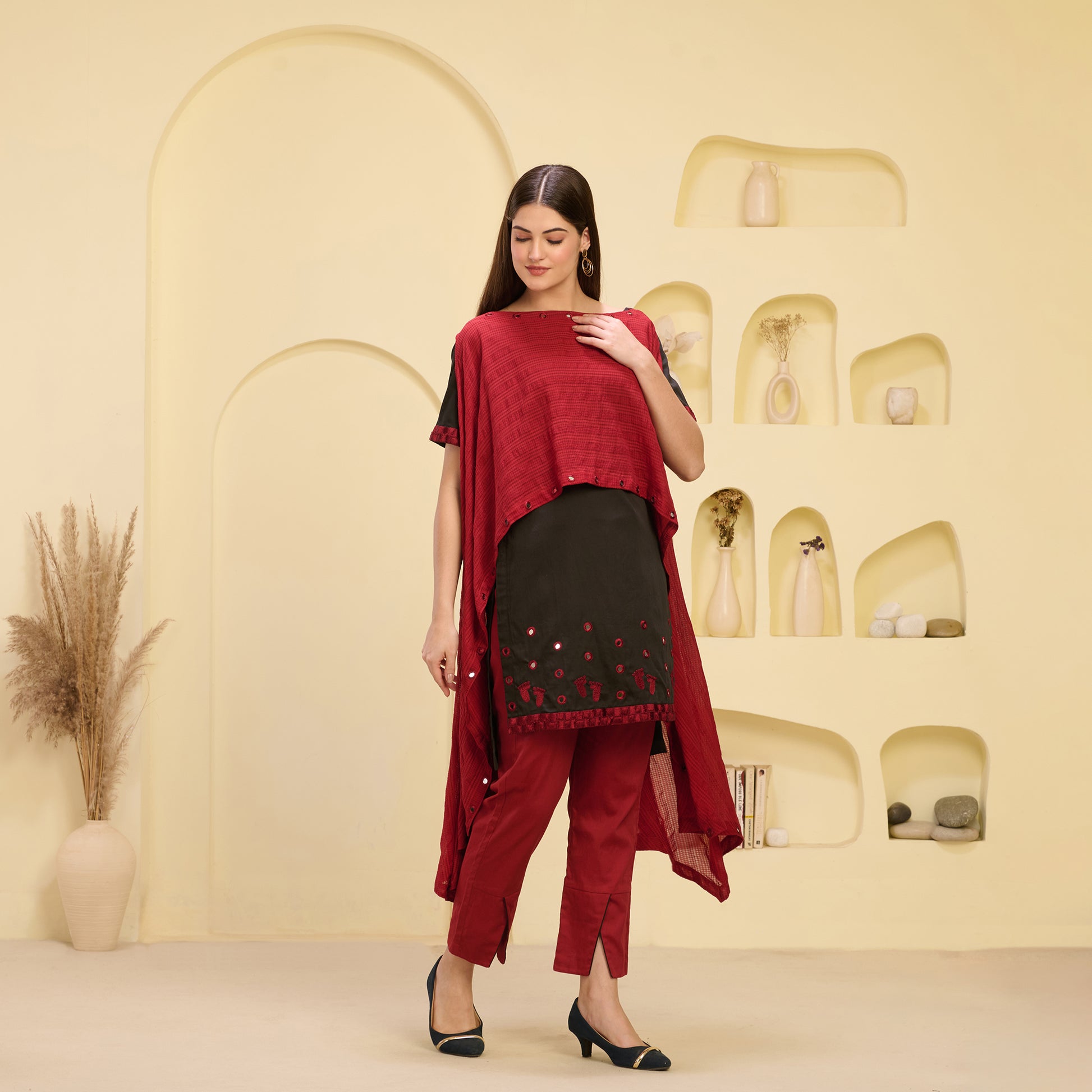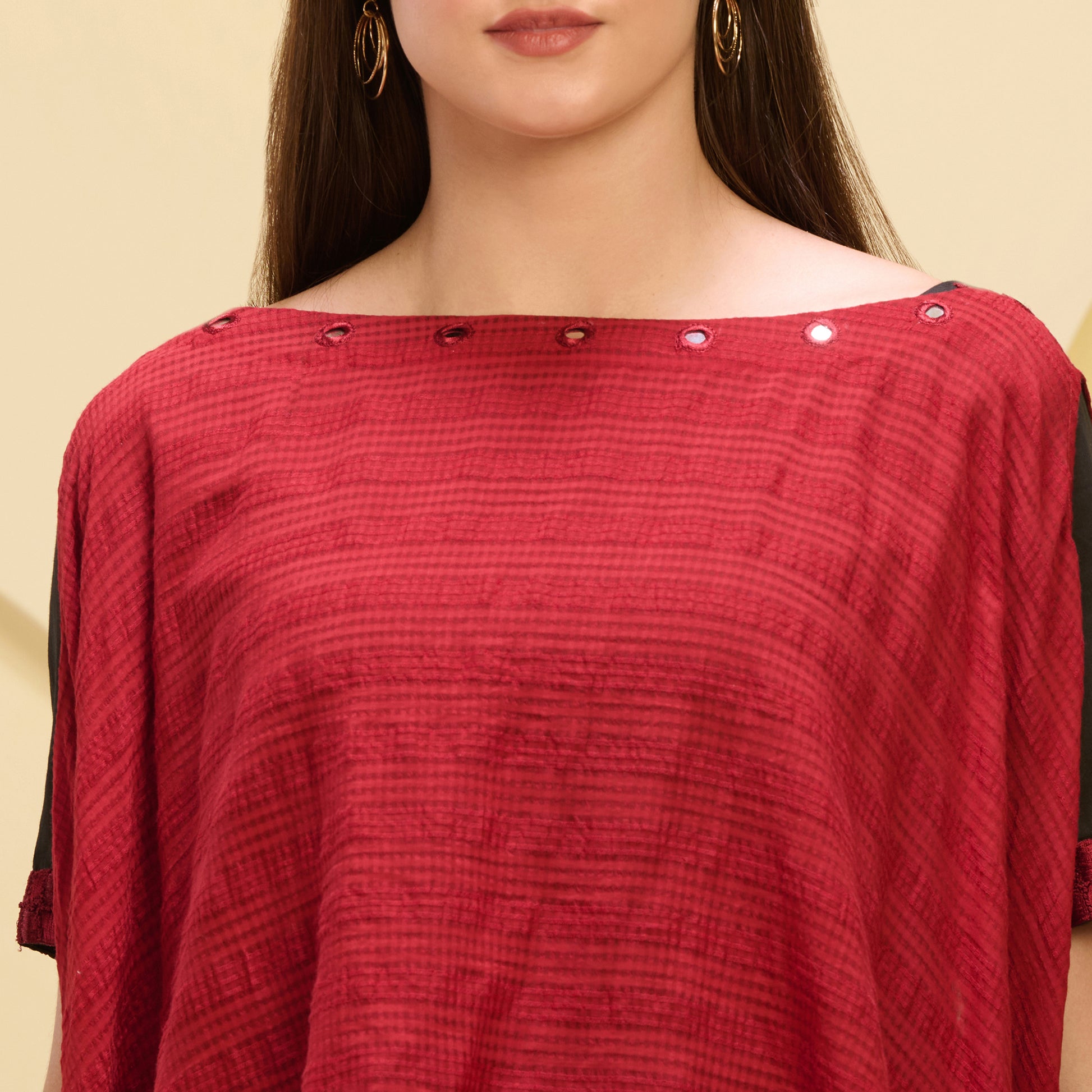 Red Mirror Hand Embroidered Asymmetric Cover-Up