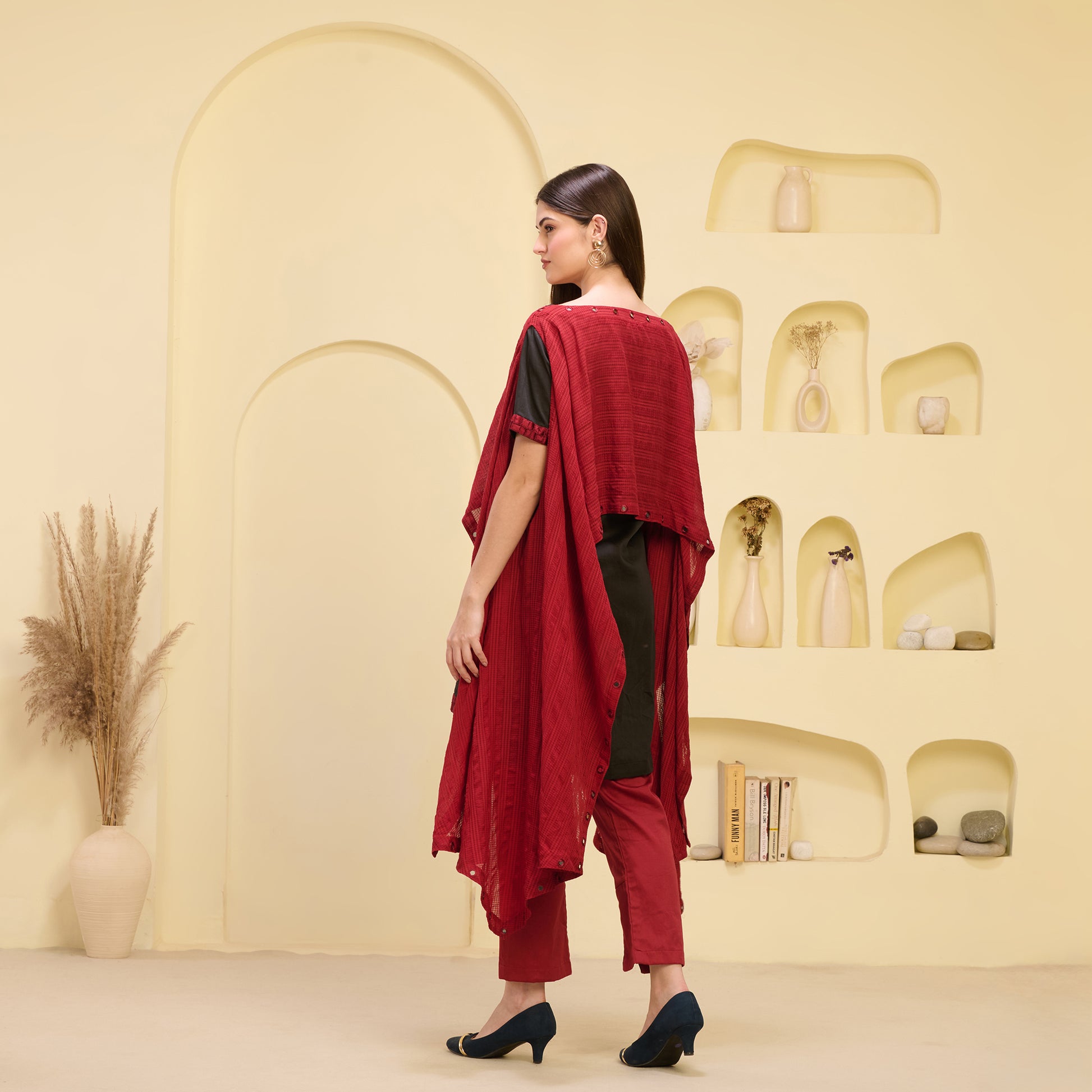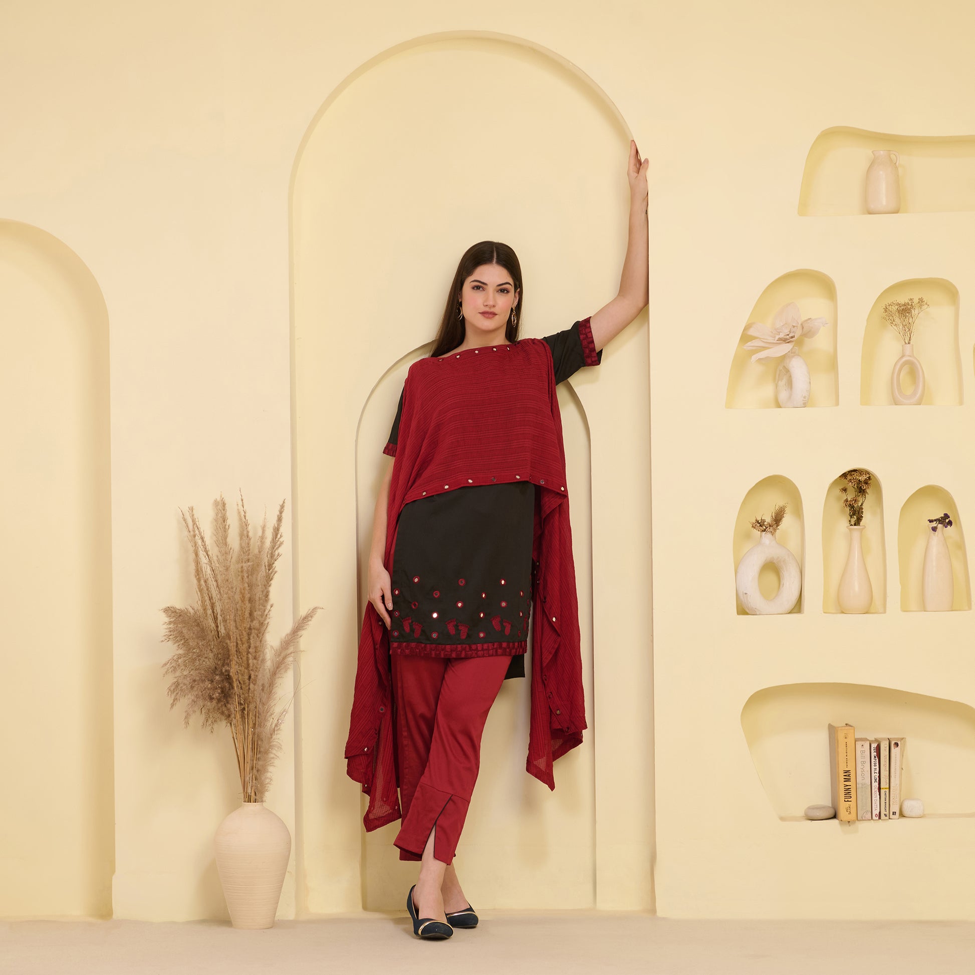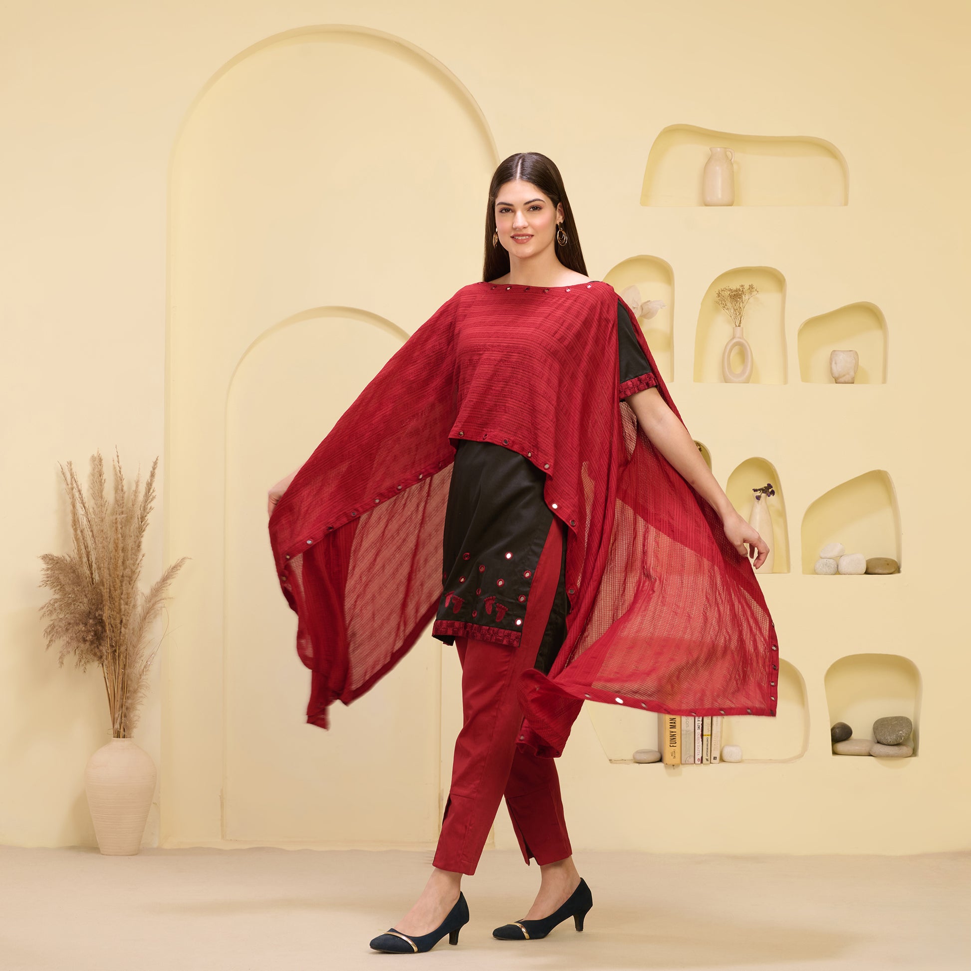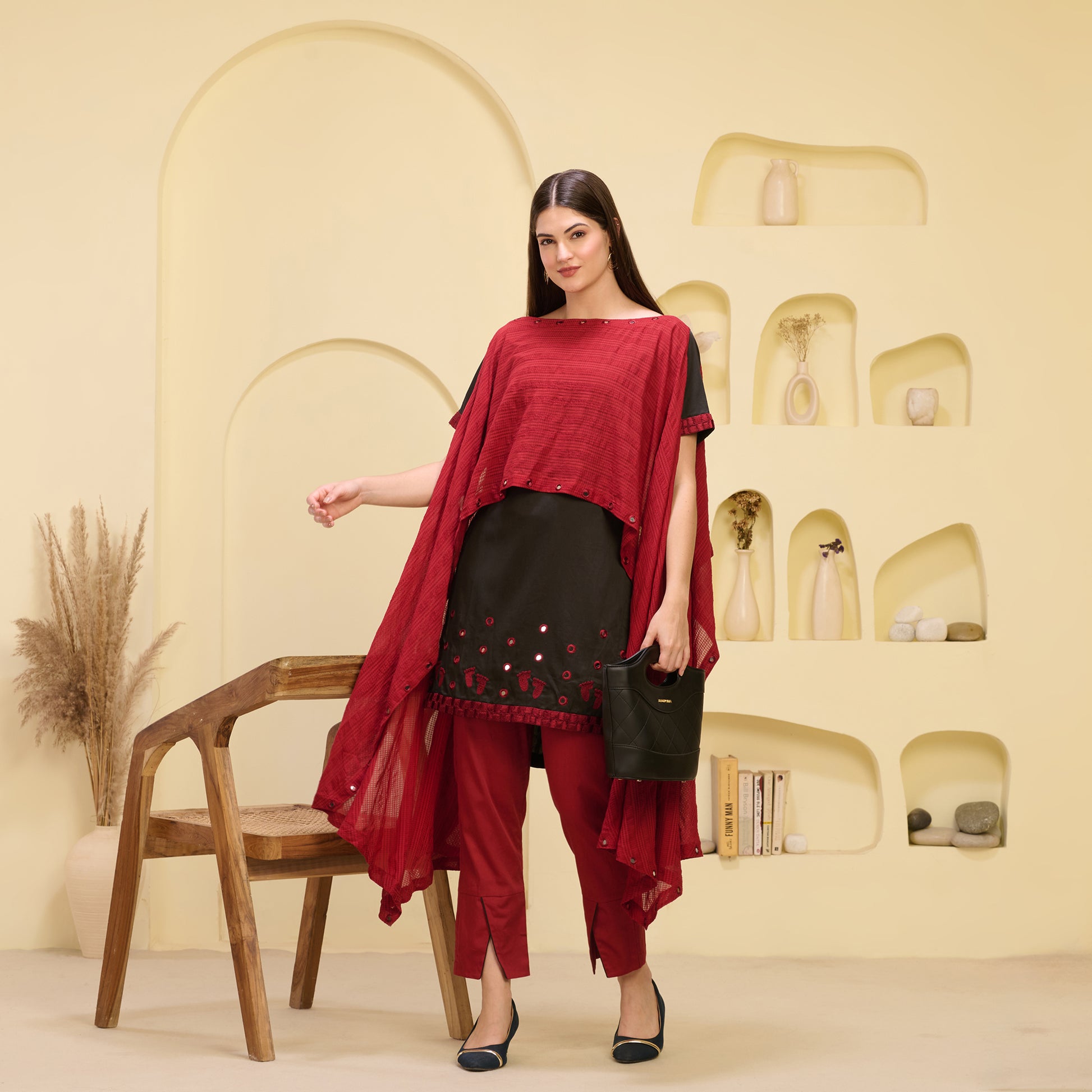 Red Mirror Hand Embroidered Asymmetric Cover-Up