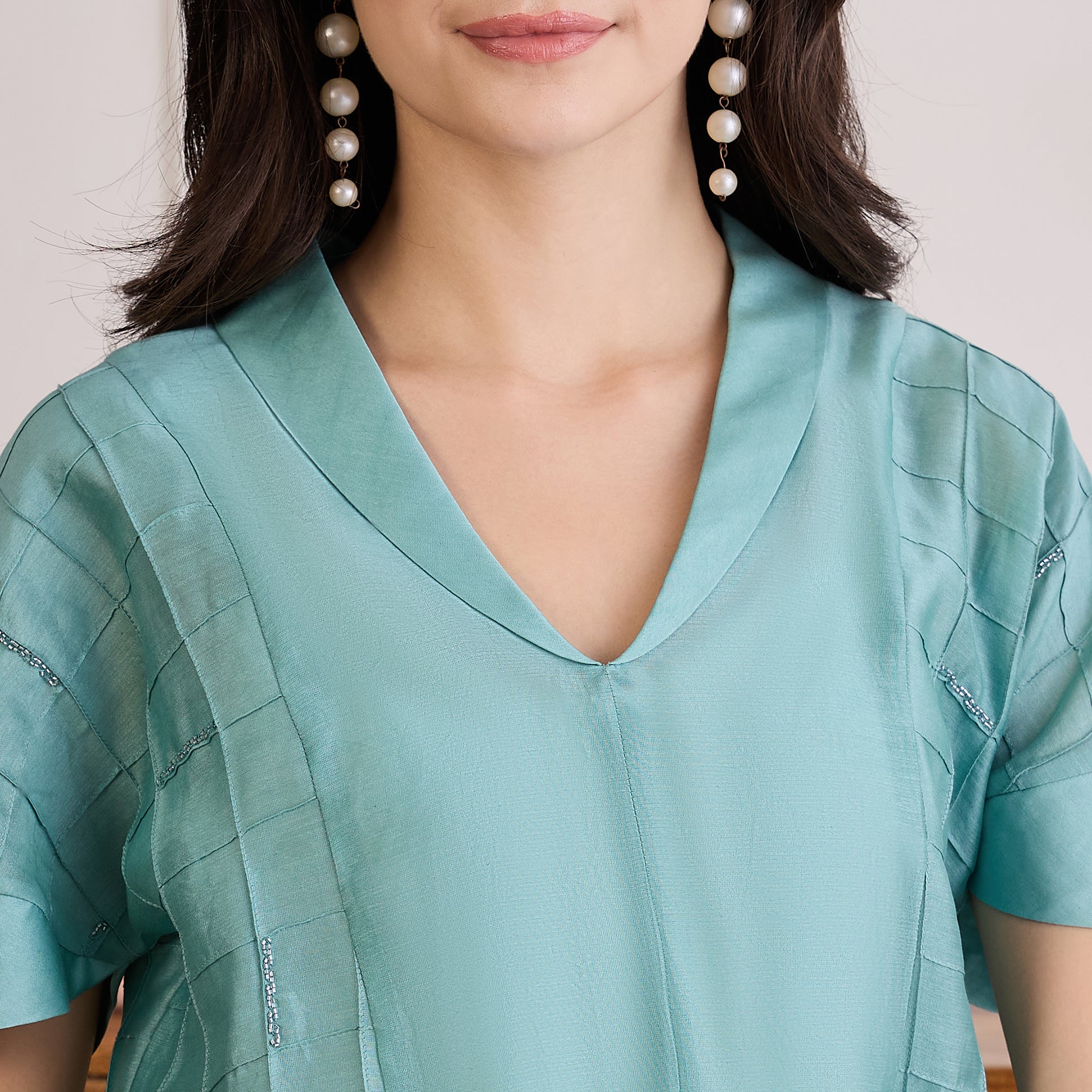 Description Embrace subtle sophistication with this pintuck-detailed top, elevated by delicate bead accents. The structured pintucks add texture and refinement, while the subtle shimmer of beadwork brings in a hint of charm. With its clean lines and graceful drape, this top blends everyday ease with polished appeal.