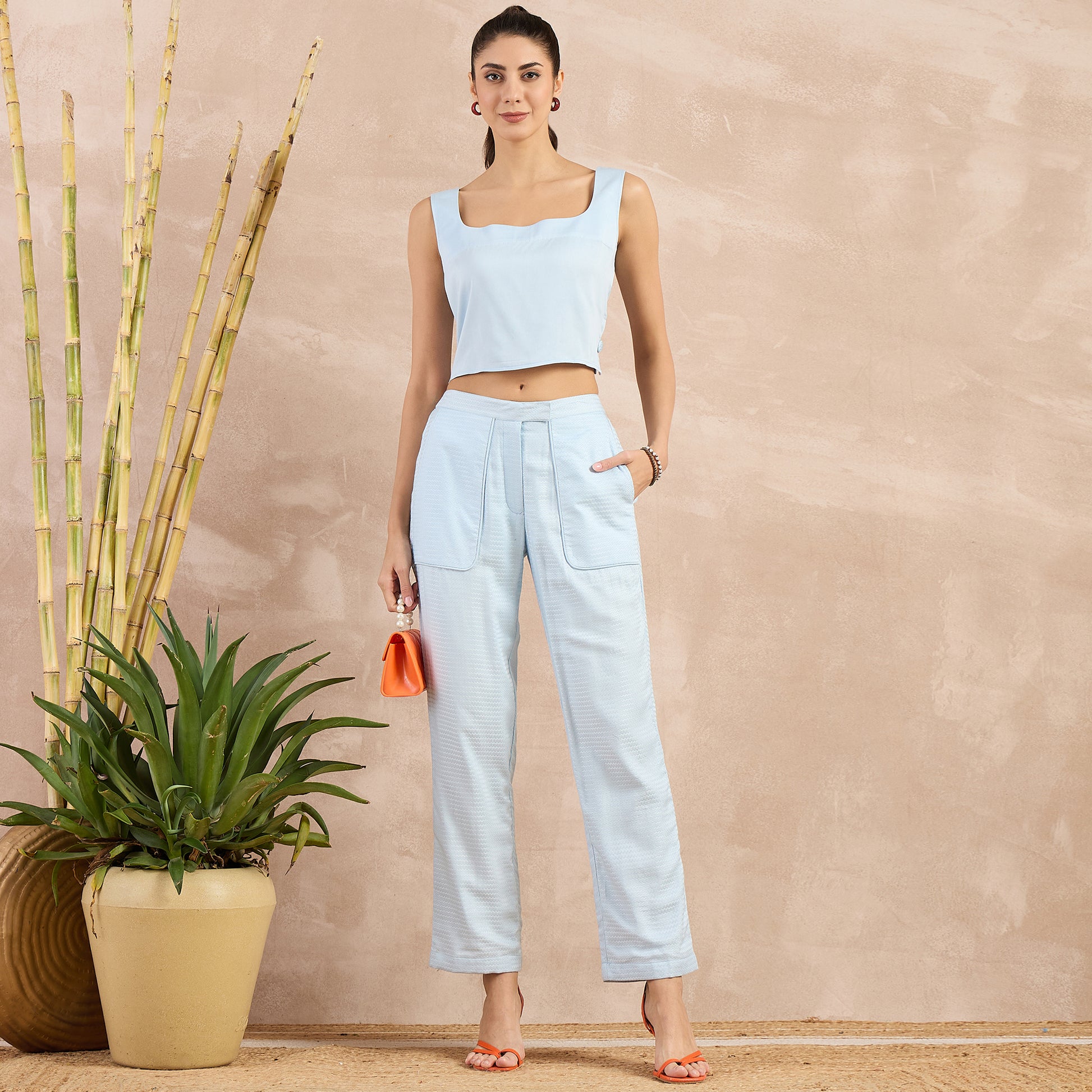 Description Grab our herringbone straight trouser, expertly crafted from sustainable herringbone textured fabric for a luxurious feel. It is highlighted by two front pockets accented with elegant piping details. The hook eye and zip closure, along with a semi-elasticated waistband, ensures a comfortable and perfect fit. This trouser is perfect for seamlessly transitioning from day to evening, offering versatility in every wear.
