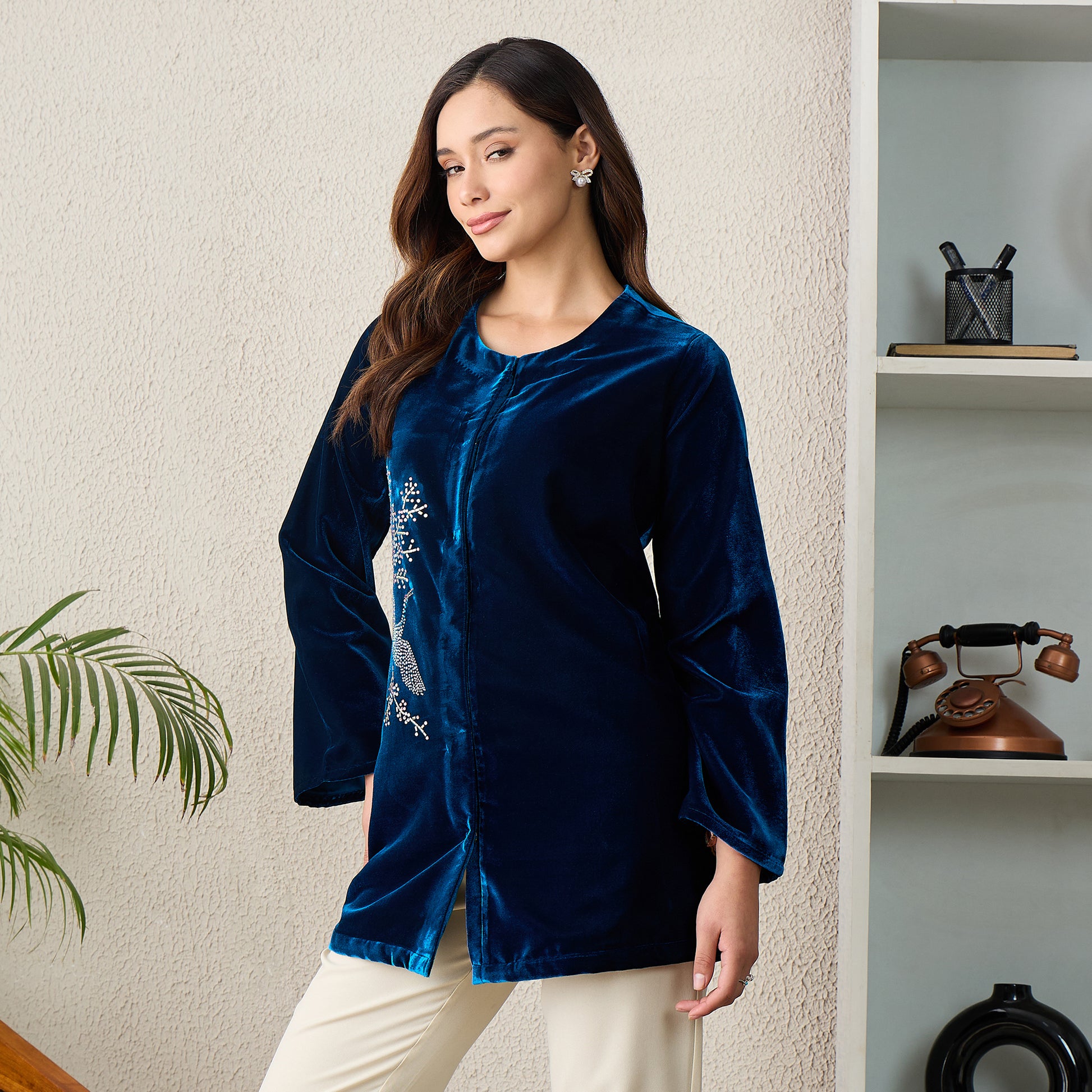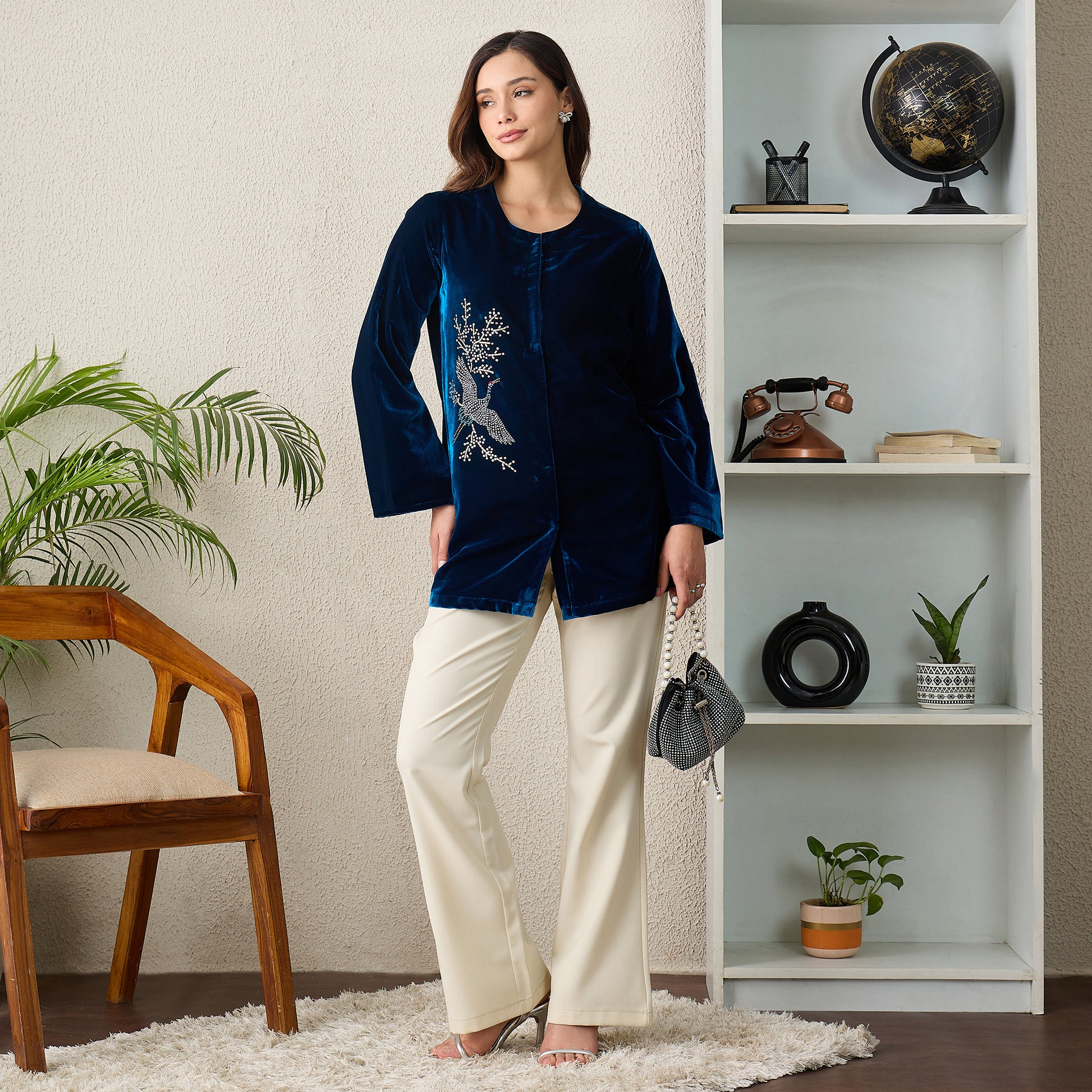 Teal Swan Motif Hand Embellished Velvet Jacket